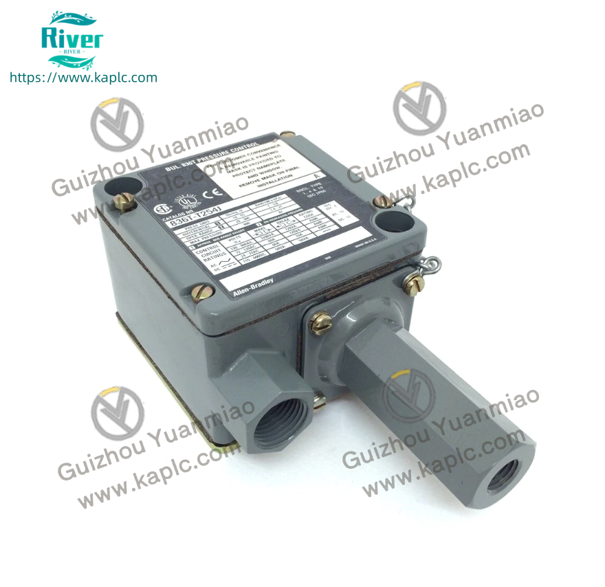 The 836T-T254J is an Allen-Bradley (Rockwell Automation) T-style electromechanical pressure switch from the Bulletin 836T series. Designed for hydraulic, pneumatic, and liquid pressure monitoring, it features a copper alloy bellows sensor, externally adjustable trip/reset points, and a rugged NEMA 1/4/13 enclosure for harsh industrial environments. Suitable for machine tools, compressors, and process automation systems.