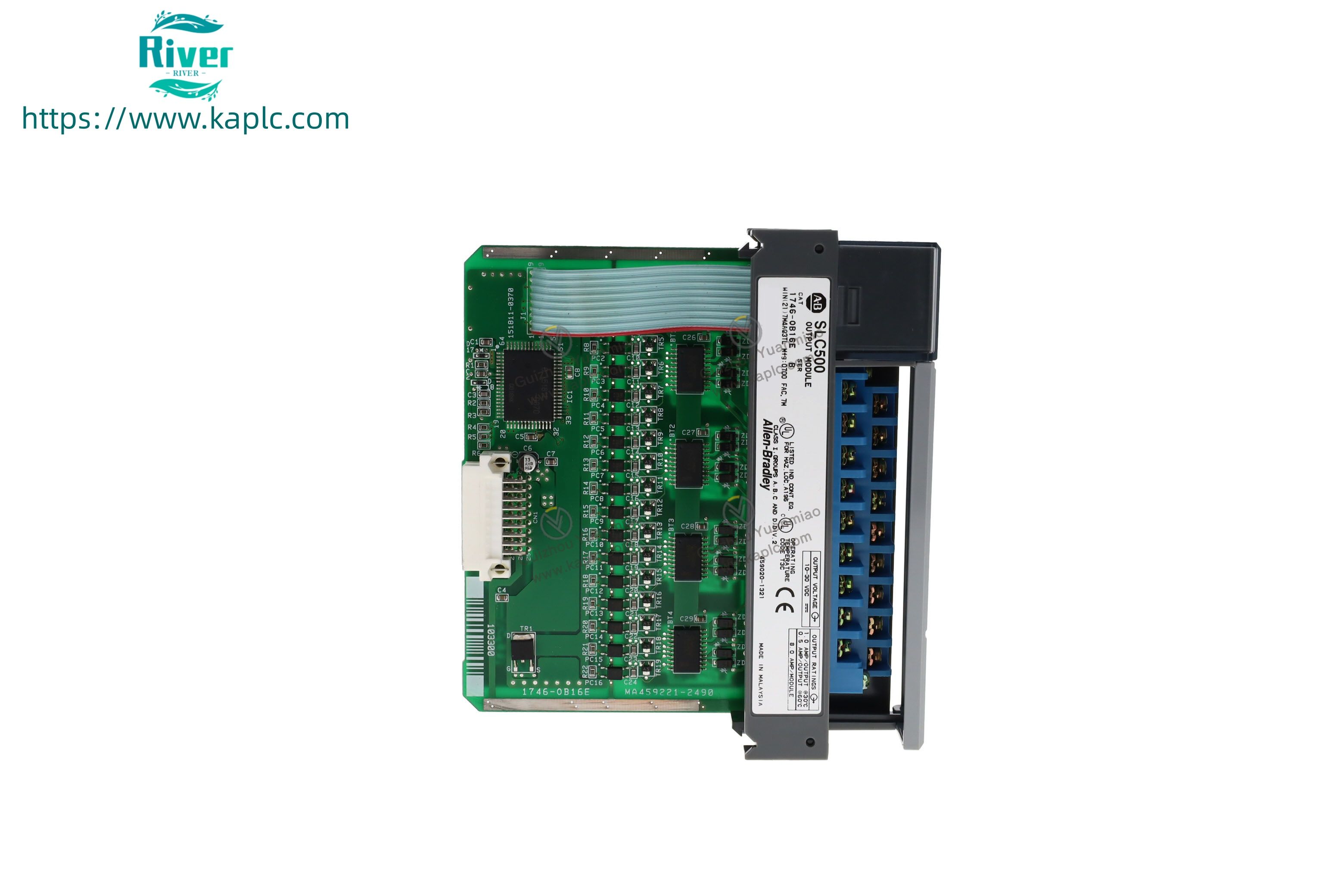Allen-Bradley 1746-OB16E 24VDC sourcing output module with electronic protection, SLC 500 series, industrial I/O parts, 12-month warranty, fast global shipping.