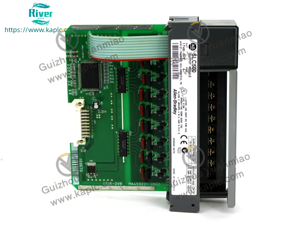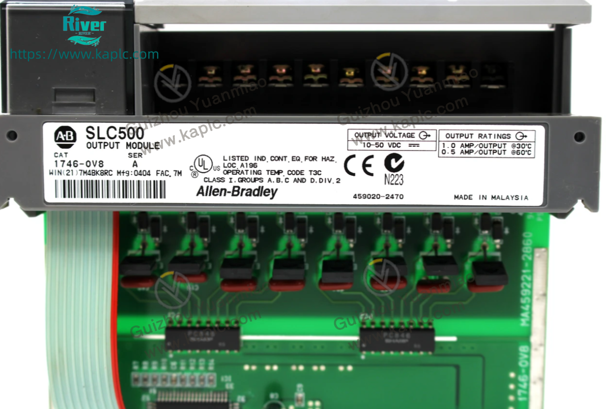 - 1746-OV8 is an 8-point sinking DC output module for Allen-Bradley SLC 500 PLC system.